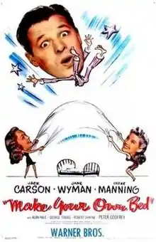 Make Your Own Bed is a 1944 American comedy film directed by Peter Godfrey and written by Francis Swann, Edmund Joseph and Richard Weil. The film stars Jack Carson, Jane Wyman, Irene Manning, Alan Hale, Sr., George Tobias and Robert Shayne. The film was released by Warner Bros. on June 10, 1944.[1][2]