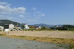 Tsuji District, distant viewJR Sakurai Line Makimuku Station at the back of the building remains. To the rear left is Mount Miwa and to the far right is the Hashihaka Kofun.
