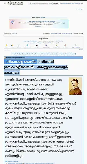 Screenshot ![]() Screenshot of the Malayalam Wikipedia home page | |