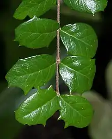 Malpighia coccigera is a species of flowering plant in the family Malpighiaceae, that is native to the Caribbean. It is commonly known as Singapore holly[1] or dwarf holly due to the shape of its leaves, but is not a true holly (genus Ilex). Its white flowers are followed by red berries, which are technically drupes. The fruit are favorite by birds that disperse the seeds through droppings. It is grown as an ornamental plant and often used to make bonsai.