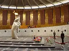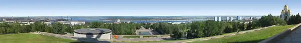 Mamayev Kurgan (Russian: Мама́ев курга́н) is a dominant height overlooking the city of Volgograd (formerly Stalingrad) in Southern Russia. The name in Russian means "tumulus of Mamai".[1] The formation is dominated by a memorial complex commemorating the Battle of Stalingrad (August 1942 to February 1943). The battle, a hard-fought Soviet victory over Axis forces on the Eastern Front of World War II, turned into one of the bloodiest battles in human history.[2] At the time of its installation in 1967 the statue, named The Motherland Calls, formed the largest free-standing sculpture in the world;[3] today it is the tallest sculpture of a woman in the world.