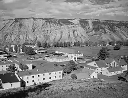 Fort Yellowstone is a carefully ordered district of substantial buildings that clearly indicate their military origins. The U.S. Army administered the park from 1886 to 1918 when administration was transferred to National Park Service.[3] The park headquarters is now housed in the original double cavalry barracks (constructed in 1909). The Horace Albright Visitor Center is located in the old bachelors' officers quarters (constructed in 1909).[4]