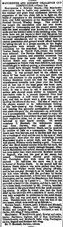 1885–86 Manchester Senior Cup Final, Newton Heath 2–1 Manchester Association, The Umpire, 4 April 1886