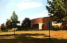 In 1956, a new campus on East Middle Turnpike opened. The graduating class of 1956 was the last class to graduate from the "old" school. The new Manchester High School is much larger than the original building, and was a state-of-the-art facility when it first opened. At the time of the opening of the new high school, Manchester High School was the largest secondary school in New England. In 2015, it is the current campus of Manchester High School. Most of the classrooms, as well as the library and main office, are located in the "quadrangle", a set of four hallways connected to make a square. The cafeteria is next to the Brookfield Street parking lot and has its own entrance and lobby. The gymnasium is next to the cafeteria, and the pool and an additional gym are nearby. Also on the campus are baseball and softball fields, a soccer/football field, and a track.