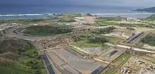 In late 2016, Indonesia Tourism Development Corporation (ITDC) obtained the Land Management Rights certificate to build the Mandalika circuit from the National Land Agency.[6] In January 2017, Managing Director of Mrk1 Consulting, Mark Hughes, made an initial sketch of the circuit layout in Lombok.[7][8] On 20 January 2017, a memorandum of understanding was signed between ITDC and Roadgrip Motorsports.[9][10] In November 2017, Vinci Grand Construction Projects signed a contract to build a MotoGP circuit in Mandalika Special Economic Zone, Lombok with an investment value of 6.5 trillion Rupiah. The construction of the circuit was expected to take 2 years, starting in 2018,[11][12][10] however the circuit was not built until 2019.[13] The infrastructure development of Mandalika SEZ, which includes the Mandalika circuit, is planned to take 3.6 trillion Rupiah. According to ITDC's Director of Construction and Operations, Ngurah Wirawan, funds will be obtained from Asian Infrastructure Investment Bank (AIIB) loans in stages until 2023. For 2019 disbursement, there are 2 packages worth 900 billion and 700 billion. The target completion date is June 2020.[14][15]