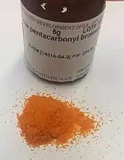 Manganese pentacarbonyl bromide is an organomanganese compound with the formula BrMn(CO)5. It is a bright orange solid that is a precursor to other manganese complexes. The compound is prepared by treatment of dimanganese decacarbonyl with bromine:[1]