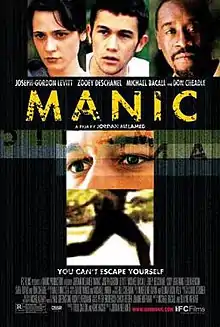 Manic is a 2001 American drama film directed by Jordan Melamed and written by Michael Bacall and Blayne Weaver. It was shown at several film festivals in 2001 and 2002, including the Sundance Film Festival. The region 1 DVD was released January 20, 2004. This also marks the first time actors Joseph Gordon-Levitt and Zooey Deschanel have worked together as each other's main love interest in a film, the second being (500) Days of Summer.[3]