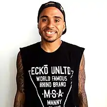 Emanuel "Manny" Santiago (born September 10, 1985), nicknamed "Manny Slays All", is a professional skateboarder from Cayey, Puerto Rico. Santiago is the first Puerto Rican skateboarder to be in the Street League Skateboarding (SLS) “premier competitive series”.[1] In 2013, Santiago won two consecutive stops in the first ever "Select Series" at Street League Skateboarding (SLS) Brazil and Barcelona. As an amateur, Santiago won 1st place for Best Trick at the Black Box Crossroads Contest amongst professional skateboarders like Nyjah Huston, Chris Cole, Torey Pudwill, and Ryan Sheckler. In 2012, he became the first Puerto Rican street skateboarder to place in the top three in the X Games after coming in 3rd place at the finals in Barcelona. He is famously recognized for his missing tooth, ear-to-ear smile, and endlessly positive demeanor.