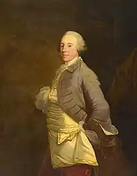 Thomas II Langford Brown (1762-1833) was either a son of Thomas I Langford Brown or of his brother Henry I Langford Brown. In 1779 he was promoted lieutenant in Simcoe's Rangers alias the Queen's American Rangers, which served in the American War of Independence. At the height of anti-American Republicanism in England, in 1793 he was one of the soldiers policing a march and demonstration in Topsham, Devon, by the loyalist citizens of Devon, supported by the local gentry. An effigy of Thomas Paine was hung on a gibbet and his "execrable book" The Rights of Man was ceremoniously burnt.[32] His chest tomb survives in Silverton churchyard, next to the west door of the church, inscribed as follows: Underneath are deposited the mortal remains of Thomas Langford Brown Esqr. (of Comb Satchfield in this parish) who died January 27th 1833 aged 71 years. Following the death in 1831 of Dorothy Ayre Taylor (Mrs Brown), the widow of Henry Langford Brown, he succeeded to the reversion under the will of his father or uncle. Combe Satchfield was sold, apparently in 1831, to George Wyndham, 4th Earl of Egremont (1786-1845), of Orchard Wyndham, Somerset, lord of the manor of Silverton.[30] Thomas I Langford Brown had at least three sons: