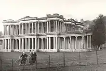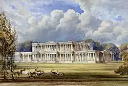 The surviving stable block, is according to Pevsner and Cherry (1991) a "monumental pedimented composition around a courtyard" [37] built "in a severely Grecian style" (Pevsner, 1952).[38] It is the only surviving remnant of the house and was acquired in 1987 by Sir John Smith, founder of the Landmark Trust who sought to prevent it being converted into flats. In 2004, with the financial assistance of a private donor, the Landmark Trust started its restoration for use as self-catering holiday accommodation, completed in 2008.[39]