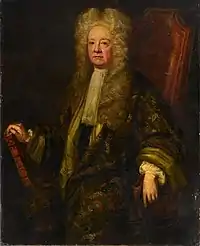 Sir Henry Langford, 3rd Baronet (c.1656–1725), of Combe Satchfield and Kingskerswell, Devon, a judge and Sheriff of Devon. 1710 portrait by William Gandy (1650-1729). Royal Albert Memorial Museum, Exeter