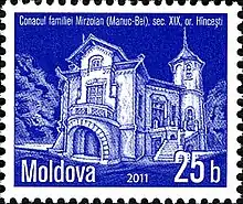 The mansion of Manuc Bey[1][2] (Romanian Conacul lui Manuc Bei or Manuc Bey, more rarely Conacul Mirzoian, officially: historical-architectural complex Manuc Bey,[3] from Romanian Complexul istorico-arhitectural Manuc Bey) is a modern palace and is located in the city of Hânceşti in the central western part of Moldova. It was the residence of Manuc Bei. It consists of a larger building complex: Manucs Palace (Palatul Princiar), the Steward's House, the hunting lodge of Countess Çadır, a watch tower and other buildings.