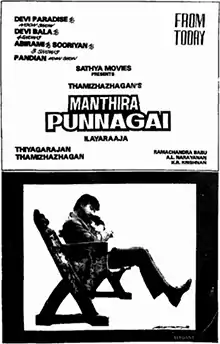 Manthira Punnagai (transl. Magical Smile) is a 1986 Indian Tamil-language film directed by V. Thamizhazhagan in his debut; he co-produced with G. Thyagarajan. The film stars Sathyaraj and Nadhiya, with Raghuvaran, Baby Sujitha, Thengai Srinivasan, Senthil, Jai Jagadish, Bob Christo and V. S. Raghavan in supporting roles. It was released on 11 December 1986.