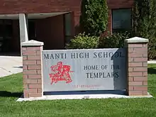 ![]() Manti High School – main entrance sign | |