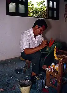 His sons Angélico (born 1954) and Isaías (born 1961) continue in their father’s footsteps, working to guard a tradition of designs they consider their own.[2][3][4] Angélico has been working as a carver, sculptor and painter for over fifty years and Isaías for over forty five. Both have their own workshops and are assisted by their wives and children.[3]
