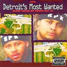 Many Faces Of Death, Vol. III is the third album by Detroit rap group Detroit's Most Wanted. Legalize It and Keep Holding On were released as singles.[4][5] The song I Never Had a Good Day is a response to Ice Cube's hit single It Was a Good Day from the previous year. Shortly before the release of this album, The group would break up due to a conflict of interest as MC Hammer wanted to sign DMW to his label Bust It Records but was prevented from doing so only by group leader Motsi Ski who would turn down the offer after disapproving of Hammer's plans for the group which would've involved a name change and a toning down of the group's lyrics.[6] MC Lee and DJ Duncan Hines would leave DMW to go sign with Hammer on Bust It Records, Causing Motsi Ski to be the only remaining member left in the group. This would be the final album as a group effort by DMW until the 2004 bonus disc of the Special Anniversary Edition of Tricks Of The Trade, Vol. II: The Money is Made.