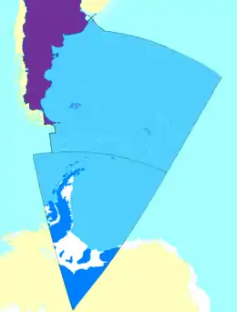 Chile created this theory, and was the first to implement one in 1991, with the passage of law N°19080.[6] Article 1, final paragraph, defines the concept of a "mar presencial" for the southeastern quadrant of the Pacific Ocean: