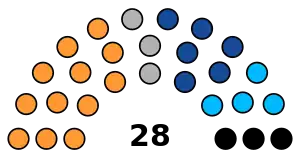 Seats28 Councillors (25 elected + 3 nominated)