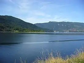 A Splats'in First Nation reserve is on the west shore at the northern end of the lake.[19]