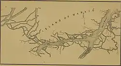 Marajó Bay, the Marajoara Gulf or the Amazon Gulf, is a recessed body of water of the Brazilian coast located in the state of Pará.[1][2][3] It is roughly 4,500 km2 (1,700 sq mi) in size, and is a receptacle for the waters of the Pará River distributary channel, the waters of the Tocantins basin and the waters of the Guajará Bay, serving as the eastern aquatic border of both the Marajó Island and the Marajó Archipelago.[4][5][6] Marajó Bay is an estuary consisting of both salt and fresh water, resulting in the classification of an estuarine system.[7] Marajó Bay also receives sediments from the Amazon River through the Breves Channel as well as the Pará River, causing the water to be turbid.[4]