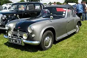 The car named the "A", later joined by the more powerful "100", was based on the Rover P4 75 with the chassis shortened by 9 inches (230 mm) from 111 inches (2,800 mm) to 102 inches (2,600 mm), the track remaining the same at 52 inches (1,300 mm). The suspension was stiffened retaining the coil sprung independent front suspension and elliptical sprung live rear axle. In view of the much lighter 2/3-seater (a single bench seat but the seats were separated on the "100"[1]) open[note 1] coachwork the engine was moved back to improve handling and front / rear weight distribution. The Rover gearbox was retained with optional Laycock–de Normanville overdrive[1] but not the Rover free wheel mechanism. The gearchange moved from column to floor.[2]