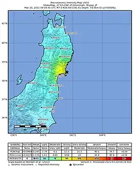 - 1 2 "M 7.0 - 27 km ENE of Ishinomaki, Japan". USGS-ANSS. USGS. Retrieved 20 March 2021.