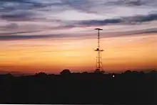 The site still includes a prominent local landmark, a 360-foot (110 m)-high (110 m) former Chain Home radar tower visible across the surrounding countryside.[4] The last remaining tower maintaining all of its platforms, the tower was given a Grade II listed status by Historic England in October 2019.[5]