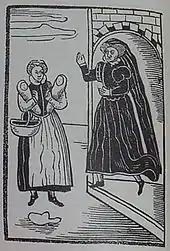 Another early illustration of Margaret's fate can be found in the chapel of Thierberg Castle in Kufstein. It was painted by Michael Waginger and shows both the insult of the beggar and the baptism of many small children.