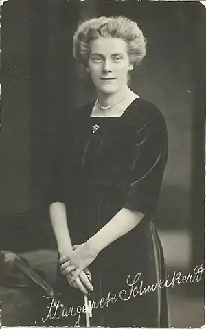 Margarete Schweikert (16 February 1887 – 13 March 1957)[1] was a German composer,[2] music critic, violinist, and pianist who composed chamber music, approximately 160 songs,[3] and a children's operetta, The Frog King.[4]