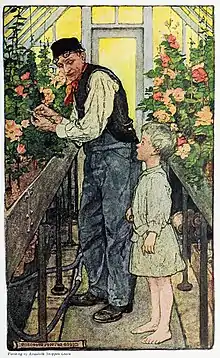 "I started to write stories because I realized that they were marketable products for which I could receive money", Gerry explained to an interviewer in 1917.[3] Novels by Margarita Spalding Gerry include The Toy Shop (1908),[4] The Masks of Love (1914), The Sound of Water (1914), Philippa's Fortune (1921), Philippa at the Chateau (1922), and Philippa's Experiments (1923). Her serialized The Flowers appeared in Harper's Magazine in 1908, with illustrations by Elizabeth Shippen Green. Similarly, Gerry's As Caesar's Wife appeared in Harper's Magazine in 1911, with illustrations by James Montgomery Flagg, before being published as a volume in 1912. Most of her short stories appeared between 1905 and 1925, in Harper's,[5] though some were instead published in Scribner's and The Smart Set. A collection of her early short stories, Heart and Chart, was published in 1911. Gerry also wrote a non-fiction work, Through Five Administrations: Reminiscences of Colonel William H. Crook, Body Guard to President Lincoln (1910).[6]