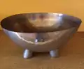 The influence of the Bauhaus school is evident in Tevan's early work. She then continued her artistic development towards an archaic romanticism, influenced by Romanesque art and the simplicity of the motifs which she used, especially in her friezes which decorate her boxes and plates. Many of the objects which she produced were hand-hammered silver-leafed copper.[3]