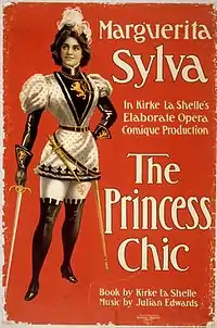 According to Marguerite Sylva's entry in the 1935 edition of American Women, it was W. S. Gilbert who gave the sisters their stage names.[3] In early 1896 they were in London, where Edith was to play her violin for Gilbert, with Marguerite providing the piano accompaniment. Sylva recalled that after Edith finished playing, Gilbert asked her, "Don't you do anything?". She told him she "sang a little" and proceeded to sing the Habanera from Carmen to him. He offered her a part in his upcoming production of The Grand Duke, but she turned it down saying that she wanted to "try grand opera first".[4] After an audition with Augustus Harris, she was engaged to sing for the Drury Lane Theatre, and made her debut there in Carmen. However, with Harris' death in June 1896, her opera aspirations ended. Instead she went to the United States with Herbert Beerbohm Tree's theatre company for a production of Gilbert Parker's The Seats of the Mighty at the Knickerbocker Theatre. Amongst the actors in the company was Gerald Du Maurier to whom she became engaged.[5] The young couple had planned to pursue musical theatre careers together in the United States, but in the end, the engagement was broken off.[6] According to Beerbohm Tree, Sylva's mother had been opposed to the marriage.[7]