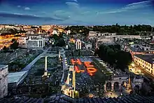 In 2018 another monumental installation 'Help' in the Roman Forum was promoted by the Colosseum Archaeological Park. This work, located on the nets of the Basilica Julia in the heart of the Roman Forum, projected its light at night, creating a suggestive 'HELP' against the backdrop of the ruins of the Basilica Julia, in the heart of this ancient site.[21]