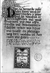 An urbarium of the parish church exists from the middle 15th century (1453–1460) in which the then church caretaker Christof Hasler the Elder registered the landed property and legal titles of the parish church. The manuscript is housed in the Bibliothèque nationale et universitaire de Strasbourg, where it ended up in 1871.[8]