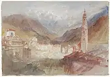 William Turner, Bozen and the Dolomites (1840), Watercolor in Tate Gallery with Maria Himmelfahrt in foreground