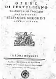 - Opere di Tertulliano tradotte in Toscano dalla Signora Selvaggia Borghini, Nobile Pisana, Roma, Pagliarini 1756