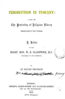 In 1853 she published "Persecution in Tuscany: a call for the protection of religious liberty throughout the world ..." which was addressed to William Gladstone.[5]