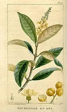 The origin of its name has two versions. It is said to come from the name of the Maricao tree (Byrsonima spicata) which has yellow flowers and grows in the region. The second version is a legend about a Taíno woman called María that, during the Spanish colonization, fell in love with a Spanish soldier. She informed him of an attack planned by her tribe and the Spanish took the offensive. María was then taken prisoner by her people and tried for treason. As was the tradition, she was tied to a tree and sacrificed. Allegedly "cao" means "sacrifice" so Maricao means "María's sacrifice"; this is considered folk etymology.