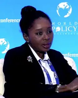 Marie-Roger Biloa is a Cameroonian magazine editor, television show host, journalist, filmmaker and president of various community-oriented initiatives. She lives in France, from where she hosts a television talk show . In France, she was named a Chevalier of the Order of Arts and Letters. [1] For her work as a journalist, she has also received the Percy Qoboza Award. Ms Biloa owns a website named Africa-international.info.[2]