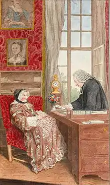 After the death of her husband, Doublet was the friend and possible lover of Louis Petit de Bachaumont; she was a supporter of parlement. The salon, known as The Parish, met in Doublet's home within the walls of the convent of the Convent of the Filles-Saint-Thomas.[1] It sponsored a clandestine newsletter, the Mémoires secrets pour servir à l'histoire de la République des Lettres en France.[2]