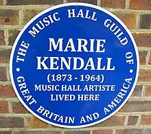 Marie Kendall died on 5 May 1964 in Clapham, London.[1] On 25 September 2011 a commemorative blue plaque was erected to Marie Kendall by the theatre charity The Music Hall Guild of Great Britain and America at her former residence in Clapham.
