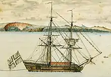 A painting of the Marie Seraphique was discovered in 1893 that matches the illustration of the 1769–1770 voyage. The illustration is signed by Jean-Rene L'Hermite and shows the ship at Saint-Domingue in 1773 during a slave sale.[3][5] A few of the people wearing European-style clothing and wigs appear to have black skin.