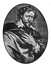 Peter Paul Rubens (1577–1640) was a highly influential artist in Northern Europe, widely believed to have played an important role in shaping the style and visual language of his time. The overseer or creator of more than three thousand woodcuts, engravings and paintings in various mediums, Rubens's works include historical, religious and allegorical paintings, altarpieces, portraits and landscapes.[17] He is particularly known for his portrayal of human figures, lush and richly colored fabrics and well-developed themes often derived from both Christian and classical traditions.[18] Rubens's studies of classical, Greek, and Latin texts influenced his career and set him apart from other painters during his time.[19] Early in his career, Rubens studied under Flemish artists such as Otto van Veen,[20] but his most notable influences come from the time he spent in Italy where he studied ancient sculpture and the works of Michelangelo, Raphael, Caravaggio, Titian, and Veronese. It was during his time in Italy that he began to make copies of classical sculpture, such as the Laocoön Group, and collect drawings done by other artists. However, the artist was also an avid collector of both reproductions and original works, not only from the masters of the Italian Renaissance, but more predominantly from his contemporaries. Rubens owned more prints from his contemporary, Adriaen Brouwer, than any other of his Italian influences or his own contemporaries, although it is suggested that Rubens's compassion and concern for Brouwer's career may have been the influential cause for his collection of Brouwer's work.[21] This record of visual history and the influences of his contemporaries, some who became lifelong friends of Rubens, would make an imprint on his art throughout his entire life.[22]