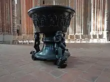 In front of the high altar was the tombstone[2] of Adelheid von der Asseburg († 1588), wife of Leonhard von Kotze, her portrait was in the right aisle. From 1581 to 1918, on the basis of a bequest, the bell was rung daily in the hour of her death at about two o'clock in the afternoon, until her endowment lapsed in the course of inflation; thus her memory remained alive in the parish.[3]