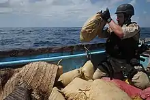 The legal gears at the international level make it difficult to intercept ships involved in drug trafficking without prior authorization from the State where the vessel is registered.[25] This is an obstacle on combating narcotics trafficking at sea for which different countries have implemented a series of legal measures and bilateral agreements to intervene in a fortuitous manner and in a spirit of cooperation with other nations to reduce traffic in the seas, here who stands out in the implementation of agreements with other nations is United States by having agreements with the Caribbean and South American countries to intervene in vessels of these nations suspected of trafficking drugs.[25]