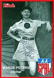 Marjorie L. Peters (September 11, 1918 – April 1, 2016)[1] was an American baseball player. She was a pitcher who played from 1943 to 1944 in the All-American Girls Professional Baseball League. Listed at 5 ft 2 in (1.57 m), 112 lb. (57 k), she batted and threw right-handed.[2]