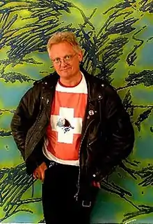 Brandl is active internationally as an artist since 1980, has won various awards, had many publications and had numerous exhibitions. His shows include galleries and museums in the US, Switzerland, Germany, Italy, Egypt, the Caribbean; specific cities include Paris, Moscow, Chicago, Los Angeles and New York. As a critic, he has been a frequent contributor to London’s The Art Book and a Contributing Editor for New York’s Art in America.[2] He has frequently collaborated with fellow former Pekinite Th. Emil Homerin.[4] Brandl has also been a contributor to Sharkforum,[5] a critical website concerning art and contributes to the renowned art critical podcast Bad at Sports.[6] Due to his participation in these publications and his many exhibitions, Brandl has become highly visible in the Chicago and New York art worlds, as well as in Europe. Recent exhibitions include a painting-installation in St. Gallen Switzerland and Berlin, Germany and a performance-art lecture in documenta 13 in Kassel, Germany in 2012. His newest project begun in 2017 is a series of lectures on art history presented entertainingly as performances with painted backdrops and within entire installations of paintings. Brandl calls this project, as well as himself in it, "Dr Great Art."[7] As a part of this, he has a biweekly podcast also titled 'Dr Great Art.'[8]