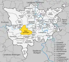 Location of Markgröningen within Ludwigsburg district ![]() | |