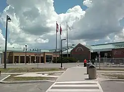 The hospital's helipad designation is (TC LID: CPH7).[4] An original heliport was located at the east end of the hospital to facilitate medical airlifts to and from the hospital. Transfer of patients requires a journey of approximately 150 ft (46 m) from the pad to the near entrance at the rear. Upon completion of the rebuilding of the hospital in 2014, the helipad is now on the roof of the new emergency wing and allows the transfer of patients directly into the hospital building. The new pad is an elevated octagon shaped pad which connects the roof of the hospital by a steel frame with a ramp to the entrance to the hospital. The relocation provides a safer landing area given that the old pad was next to public access roads around the rear of the hospital. The old pad site was removed (along with a Windsock nearby) during the re-development of the new Cornell Community Centre & Library and used as a parking/storage space by construction crews.