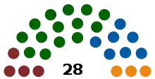 In the run-up to the local government elections on 1 November 2021, Van Staden was announced as the DA's mayoral candidate for the municipality.[22] In the election, the ANC increased their support, but not enough to win an outright majority on the council. It won 49.83% of the vote or 14 seats on the 28-seat council, which meant that it was still a hung council. The DA, EFF and FF Plus won the remainder of the seats. It was unclear which party could lead a coalition.[23] The first council meeting on 19 November 2021 collapsed because the ANC councillors did not attend it, which caused the council to not have a quorum.[24][25] The second council meeting on 22 November 2021 was postponed after the election for the council speaker ended in a 14–14 stalemate.[25][26] The third council meeting on 23 November 2021 collapsed after the ANC councillors disrupted council proceedings after the speaker's vote ended in a tie for the second time.[25][27] At the fourth council meeting on 29 November, the ANC's Sinah Langa was elected as council speaker in a 15–13 vote. The election for the mayor ended in a 14–14 tie between Van Staden and ANC councillor Aaron Sebolayi.[28]